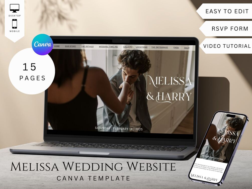 Editable Wedding Website Template, RSVP Digital Wedding Invites, Save the Date, Custom Website for Weddings, Editable Wedding Invitation